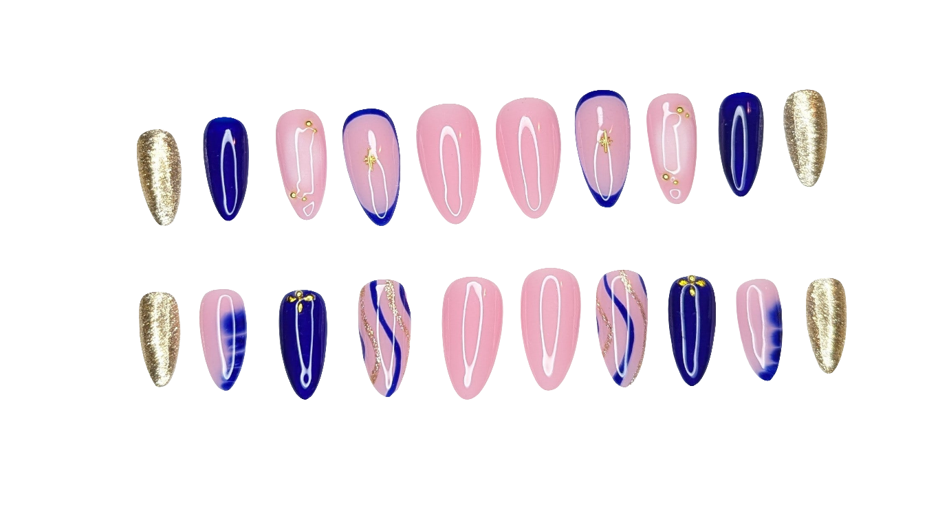 Dark Blue&Gold Press on Nails