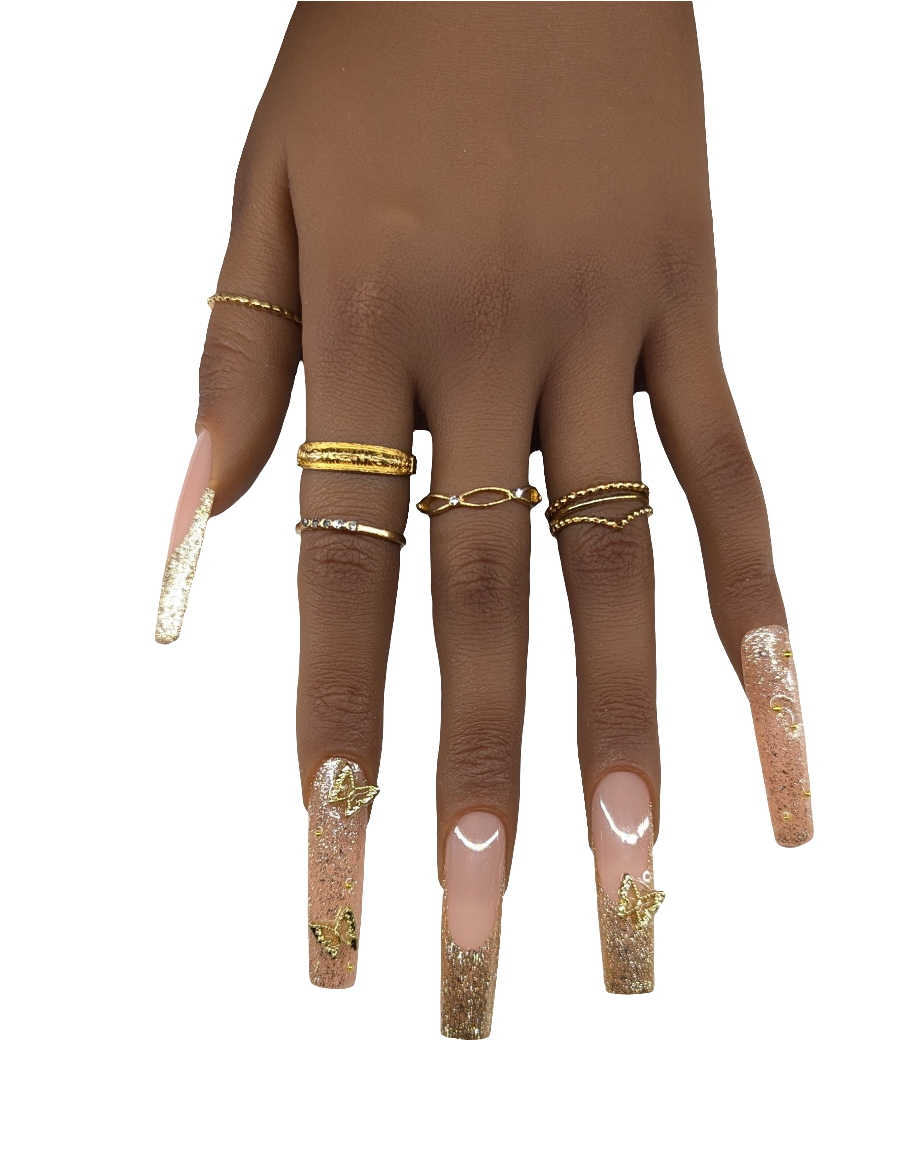 Designed for maximum durability and ease of use, our Natural Gold Press Ons set in size large XL includes 10 nails and a MB nail kit. Enjoy effortless and long-lasting wear, perfect for achieving a flawless and professional look at home.